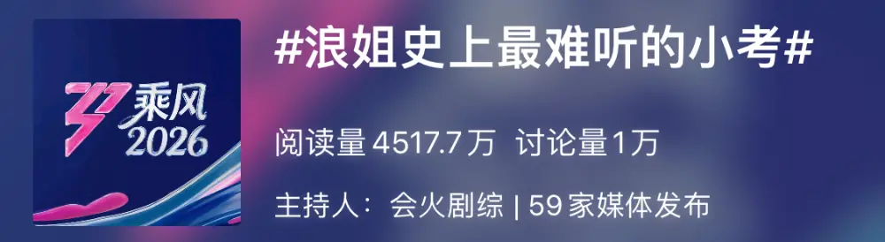 《乘风2026》开播,豆瓣热度达到史无前例的1.2亿。
