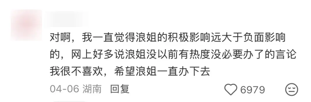所以也有很多观众说,“希望浪姐可以一直一直办下去”。