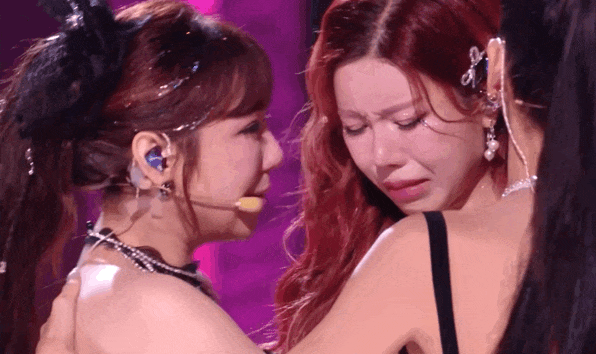 在孙怡哭着下台后,她和姐姐们围过来的拥抱和安慰,也被真实地记录。